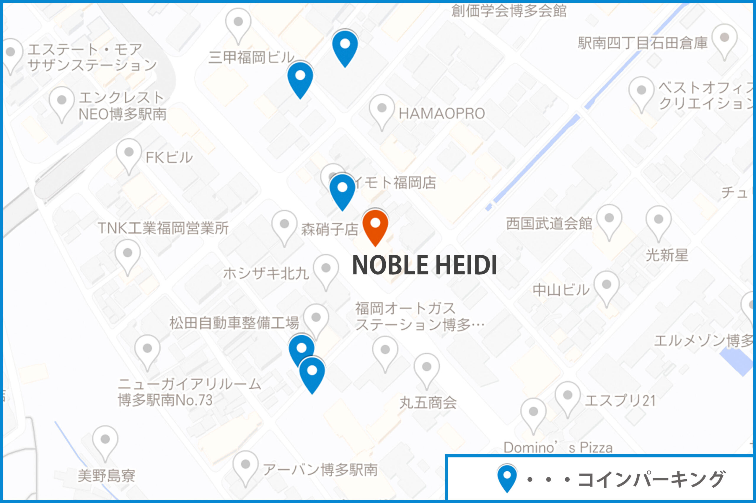 NOBLE HEIDIは↓正面に見えるガラス張りのマンションにあります。